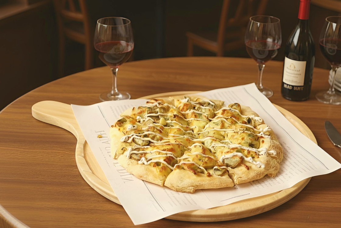 嚴選野菇切片鋪於餅皮,搭配濃厚起士慢火烘烤,香氣層層堆疊。出爐後淋上微甜蜂蜜松露醬,甜鹹交織、松露風味馥郁,令人越吃越上癮。