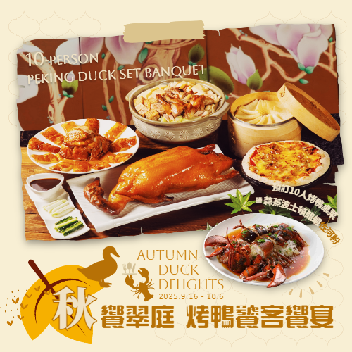預訂10人份烤鴨桌菜加贈蒜蒸波士頓龍蝦佐河粉、平日預訂烤鴨再烤鴨造型手工餅乾