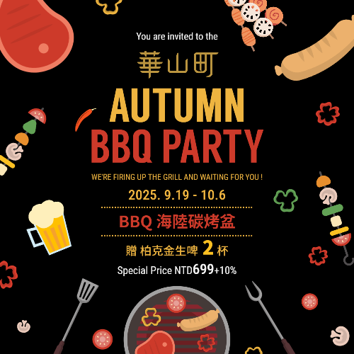 40位以上每位1,168元起 10/31前預訂&完訂加贈生啤酒柱或特選氣泡酒2瓶